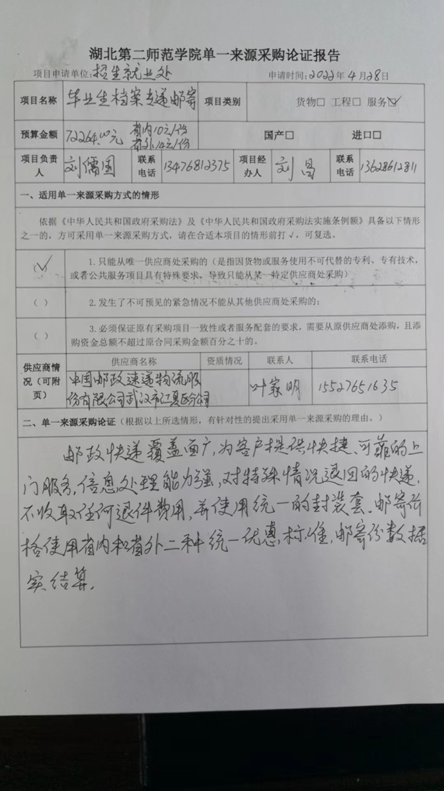 拟采购的货物或服务的说明:毕业生档案邮寄服务
