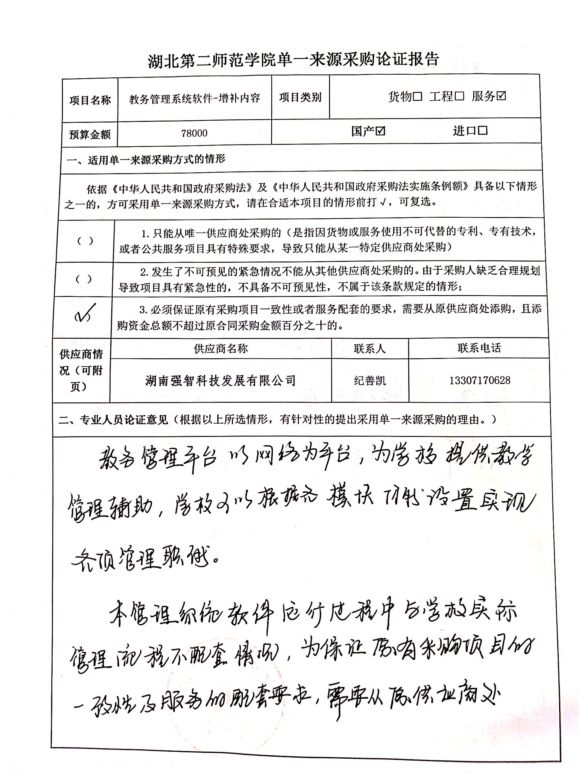 拟采购的货物或服务的说明:湖北第二师范学院综合教务管理系统增补内容